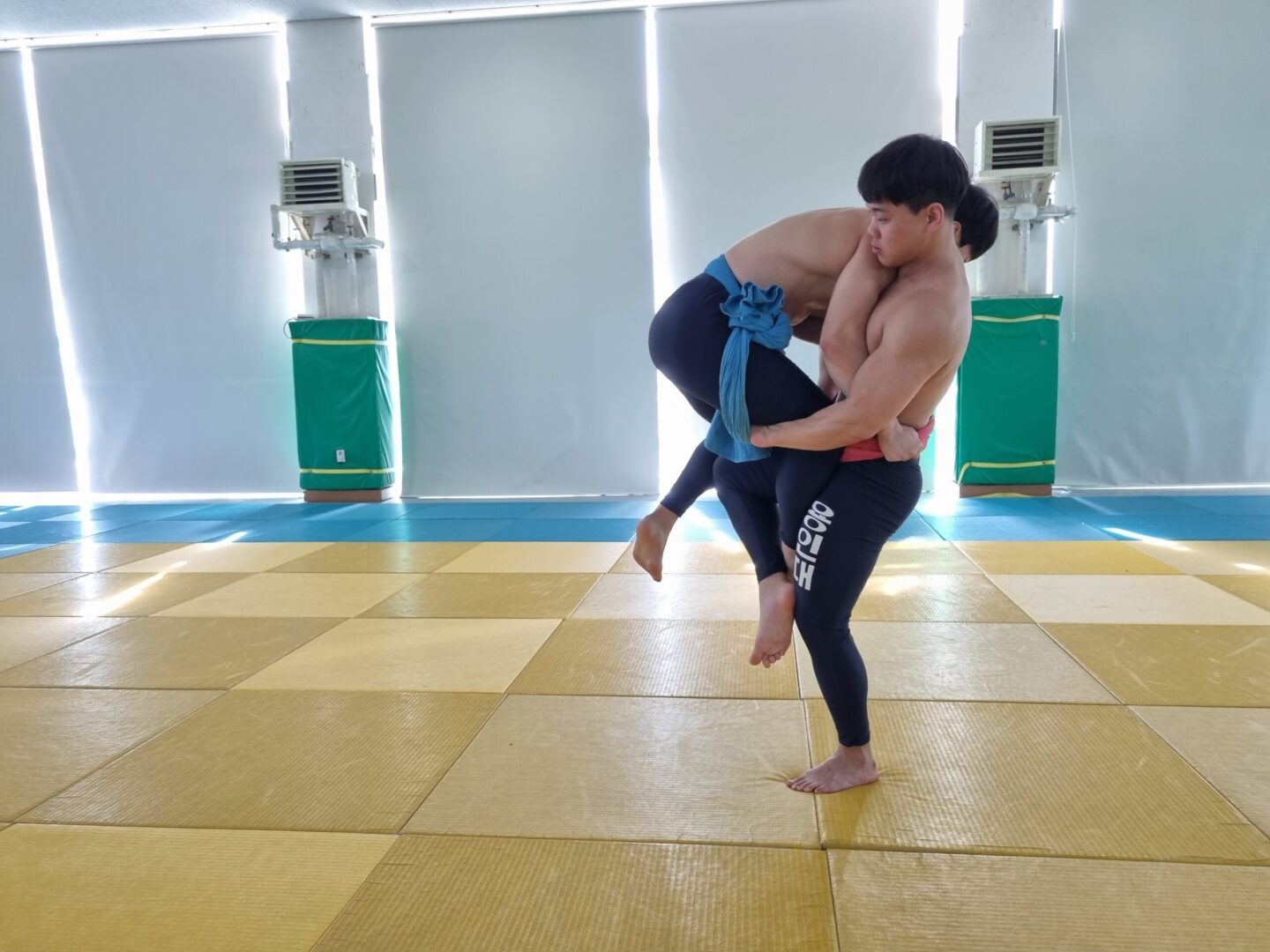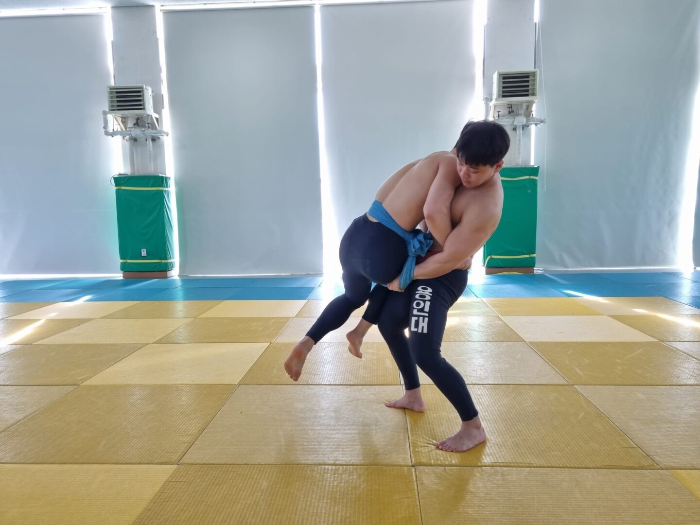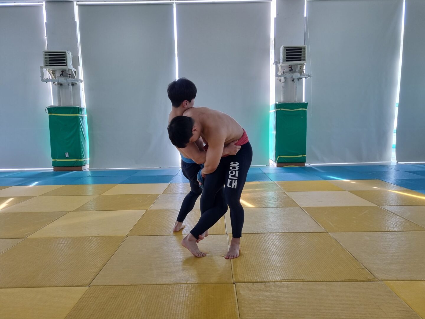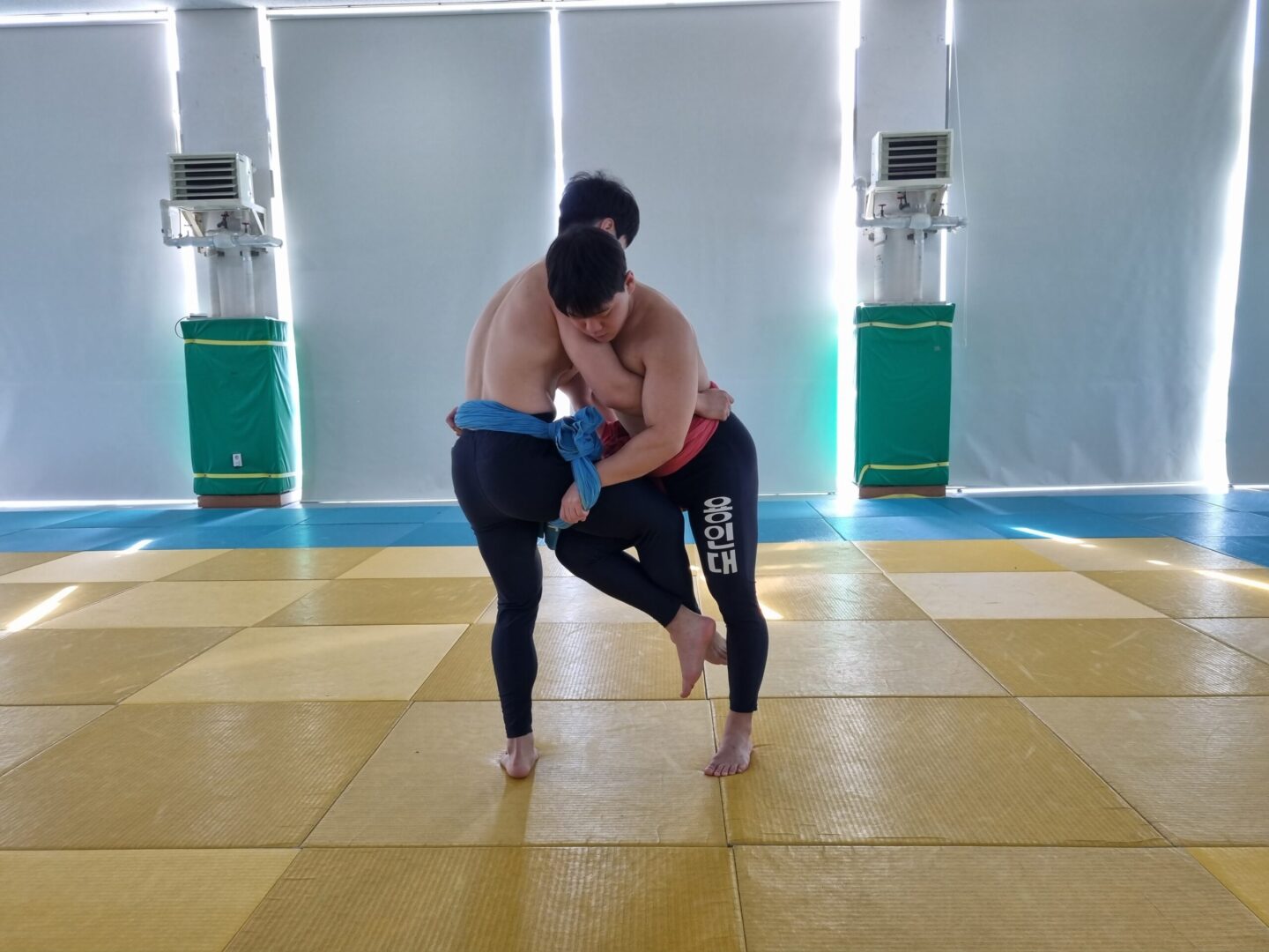 실제 몸동작을 하고 있는 인체에 점을 찍어 연결한 것으로, 씨름 동작의 움직임을 보다 더 입체적으로 표현했습니다.