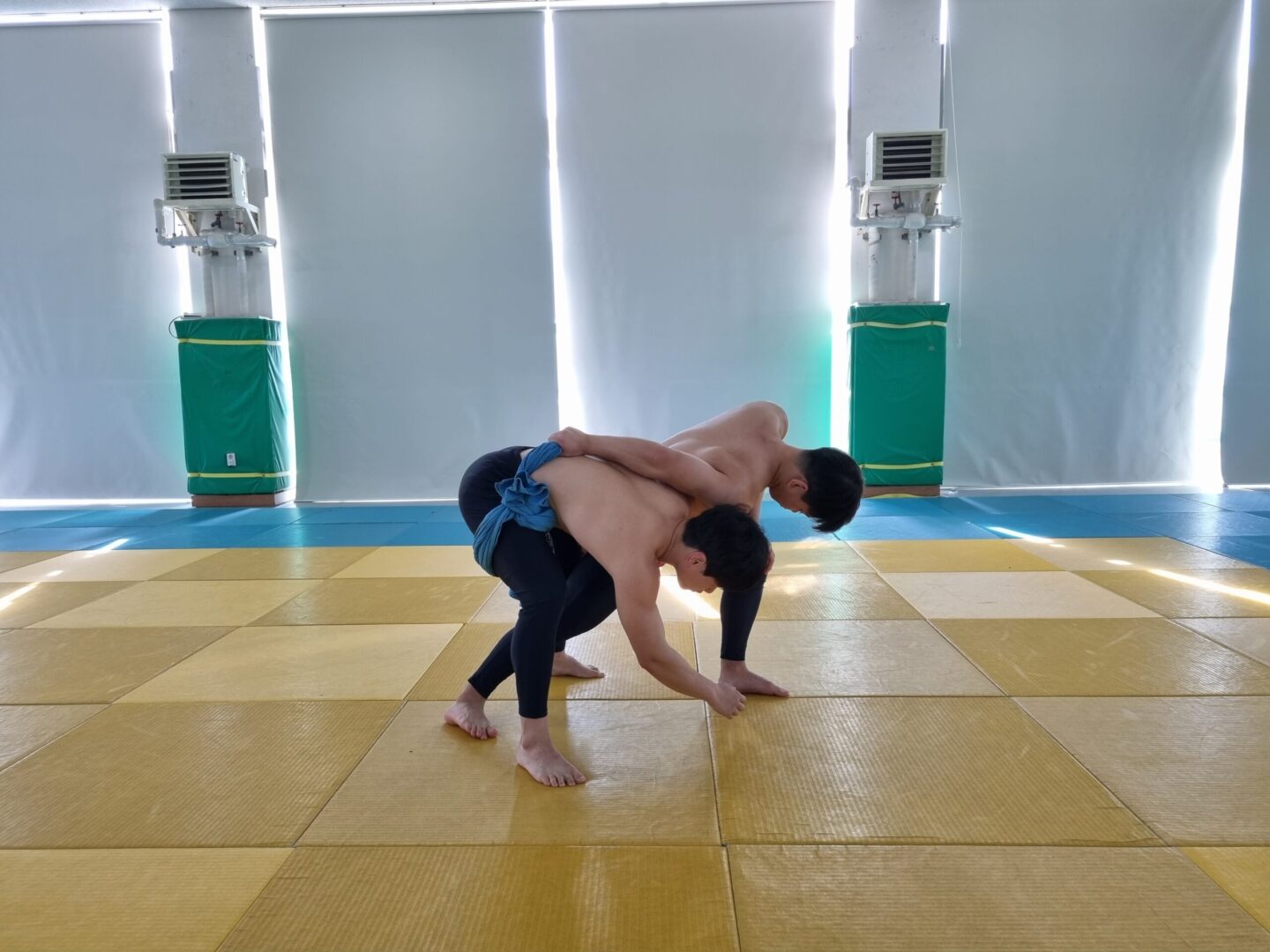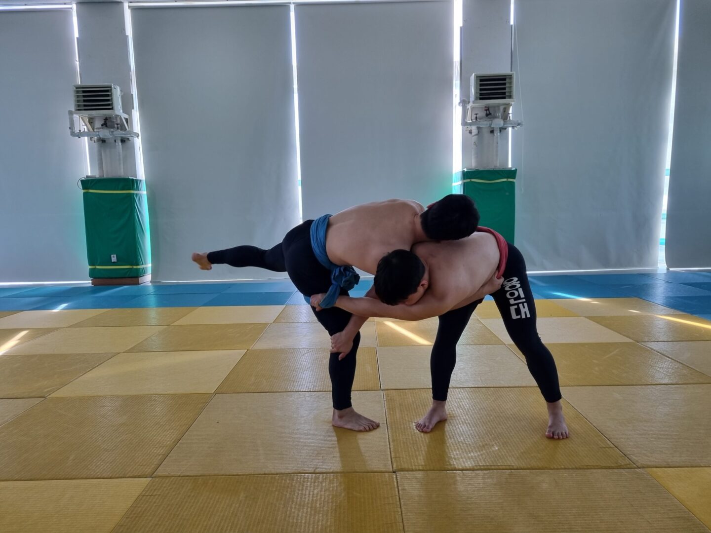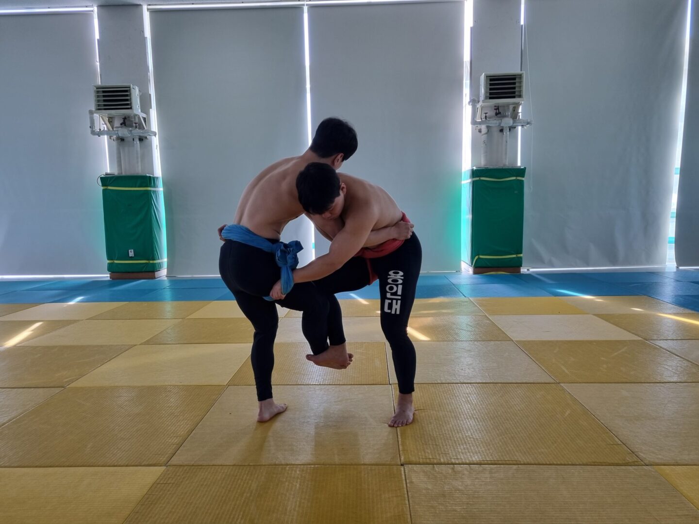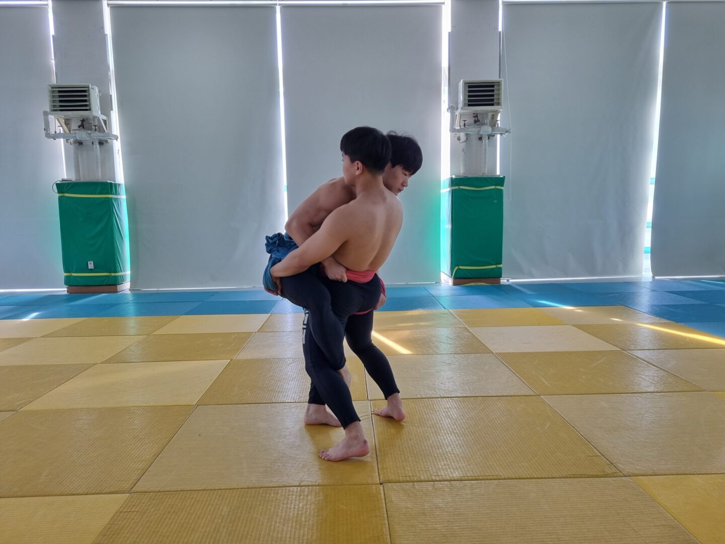 실제 몸동작을 하고 있는 인체에 점을 찍어 연결한 것으로, 씨름 동작의 움직임을 보다 더 입체적으로 표현했습니다.