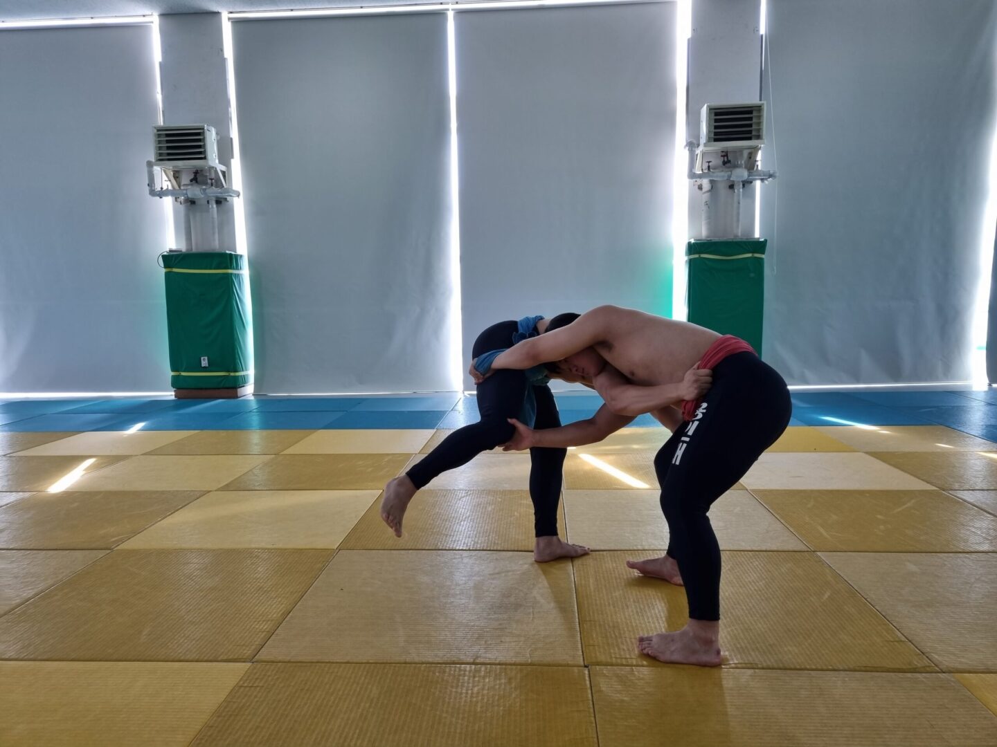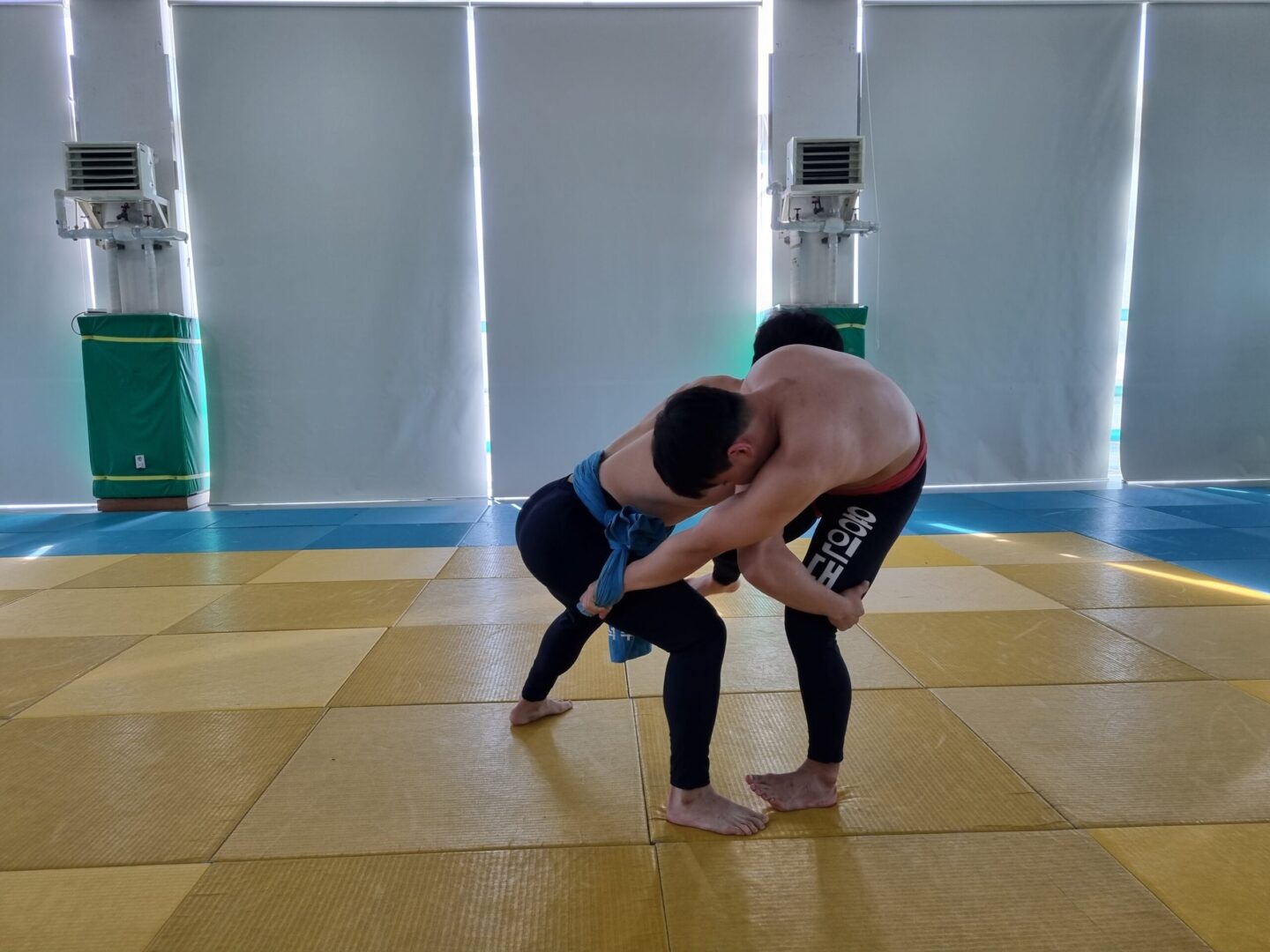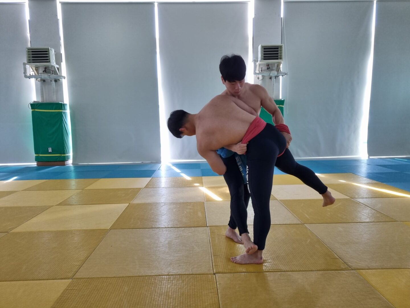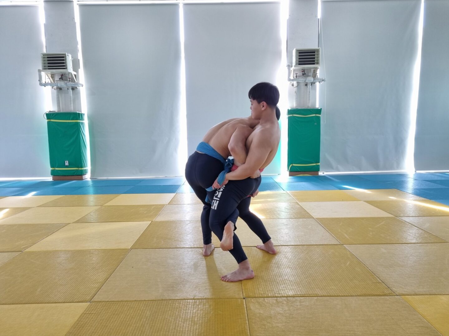 실제 몸동작을 하고 있는 인체에 점을 찍어 연결한 것으로, 씨름 동작의 움직임을 보다 더 입체적으로 표현했습니다.