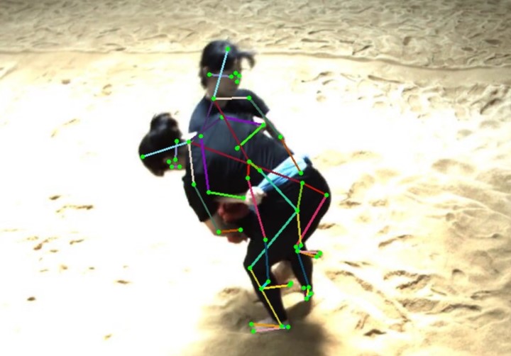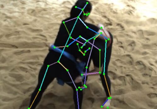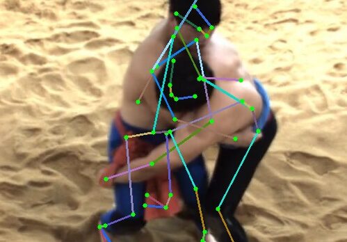 실제 몸동작을 하고 있는 인체에 점을 찍어 연결한 것으로, 씨름 동작의 움직임을 보다 더 입체적으로 표현했습니다.